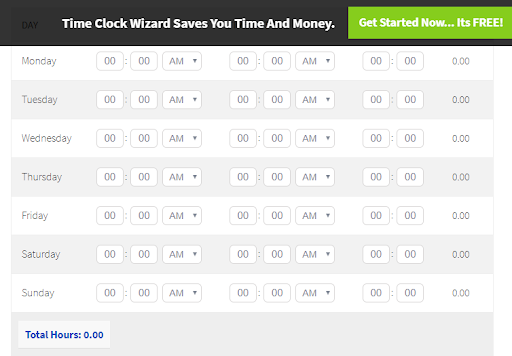 That s all the information needed for the time card calculator to create a customized report with the employee s total hours per day and for the entire week.